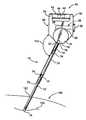 Connection to the base24 in the preferred embodiment of FIGS. 6,8 and9 is accomplished by the provision of a connecting pin or otherapplicable structure78 fixedly or removably secured to thebase24 by virtue of it being interconnected as at69 to the mountingmember18. When it is desired to secure the base24 in its operative position as described above and as more fully detailed hereinafter, the connectingpin78 is telescopically disposed within theinterior74 of theadaptor structure70 through theopen extremity76. Similarly, the opposite or first end of theadaptor structure70 is telescopically disposed over theproximal end16′ which is extended through theopen extremity72 into the interior74.