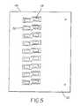 FIG. 10 is a perspective view of the front of a support having conductive strips inset into the surface with anisotropically conductive tape strips with adhesive backer liner positioned over the conductive strips;