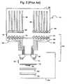 Moreover, thecapacitors193 and195 are provided between the power line and the ground line to secure a proper performance of the device under test by filtering out the noise or surge pulses on the power lines. Thecapacitors193 have a relatively large value such as 10 μF and can be disconnected from the power lines by switches if necessary. Thecapacitors195 have a relatively small capacitance value such as 0.01 μF and fixedly connected close to the DUT. These capacitors serve the function as high frequency decoupling on the power lines. In other words, the capacitors limit the high frequency performance of the probe contactor.