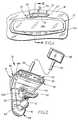 As is best seen in FIGS.3 and5-7,assembly10 is releasably mounted for breakaway separation from the windshield mounted retainer or button B by means of a resilient,breakaway mounting system150 at mountingarea48. Mountingassembly150 preferably is of the type disclosed in co-pending, commonly-assigned U.S. patent application Ser. No. 08/781,408, filed Jan. 10, 1997, now U.S. Pat. No. 5,820,097, the disclosure of which is hereby incorporated by reference herein. Mountingassembly150 comprises aperipheral wall152 outlining a rectangularretainer receiving area154, acentral button support156 and spaced lateral button supports158a,158b. Aresilient spring clip50 formed from spring metal is received inretainer receiving area154 and secured therein by means of retainingflanges160 fitted under a shoulder on the interior ofwall152. Acentral aperture162 is interference fitted overbutton support156, while upstanding,resilient flanges164 andresilient end flange166 extend outwardly for engagement with windshield mounted button B as shown in FIG.9.