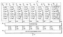 Referring now to FIG. 4, a switched beam antenna system includes anantenna80 having a plurality ofantenna elements82. Each of theantenna elements82 are coupled through a respective one of a plurality of elevation distribution networks84a-84hto a respective one of a plurality ofoutput ports86a-86hof a Butler matrixbeam forming network88. As will be described in conjunction with FIGS. 5-7 below, a signal fed to predetermined ones of the input orbeam port88a-88hresults in the antenna forming a beam which appears in a different beam location in an azimuth plane. Each of the elevation distribution networks84 is comprised of a first two-to-one (2:1)power divider90, which splits the power equally to tworadiator feed circuits92a,92b.