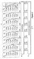 Referring now to FIG. 9, anarray antenna150 having a length L and width W includes a transmitarray152 and a receivearray154. Each of thearrays152,154 includes eight rows156a-156gand six columns158a-158f. Thus each of the transmit and receivearrays152,154 have forty-eight radiating elements (or more simply “radiators” or “elements”), generally denoted160, with eight elements in azimuth and six elements in elevation.