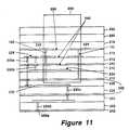 FIG. 11 is a cross-sectional view of taken across lines11—11 of the antenna element of FIG. 10; and