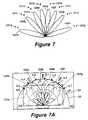 Referring now to FIG. 7A, a calculatedantenna radiation pattern122 includes sevenbeams124a-124gwhich can be used in a radar system. The seven beams are provided by combining predetermined ones of the eight beams formed by the Butler Matrix as discussed above. Adjacent beams (e.g. beams120a,120bfrom FIG. 7) can be combined to producebeam124aas illustrated in FIG.7A. Since beams out of a Butler Matrix by definition are orthogonal, combining beams in azimuth produces a cos(θ) taper with a peak sidelobe level of 23 dB (with respect to the beam maximum).