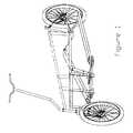 The vehicle may also include a seat or resting element mounted to theframe22. An elongated bicycle seat, commonly known as a banana seat, may serve as a surface on which the rider may rest during periods of inactivity. Alternately, a leaning pad could be used to alleviate the intensity of the work-out, by providing a resting element against which the occupant may lean. The seat would allow further adjustability of exercising intensity. As a result, the bicycle may be ridden in a leaning or even seated position, while still maintaining a generally upright stance. This may be preferred by riders of lesser physical ability. The seat may also be completely removable without infringing on the original intention of the invention.