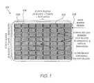 Turning to FIG. 1, there is shown the data surface101 illustrating a sample of encoded data. Each photograph having encoded data consists of an “active”region102 surrounded by aborder region103. Theborder103 contains no data information, but can be used by an encoded data reader to calibrate signal levels. The active region is an array of data blocks e.g.104, with each data block separated from the next by a gap of 8 image dots e.g.106. Depending on the print resolution, the number of data blocks on a photograph will vary. On a 1600 dpi printed photograph of 4″×6″, the array can be 15×14 data blocks in an area of approximately 97 mm.×147 mm. for 2.5 mm margins. Each data block104 has dimensions of 627×394 dots with aninter-block gap106 of 8 image dots.
