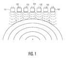 FIG. 1 shows how typical ultrasonic beam is formed by a linear array of piezoelectric elements;