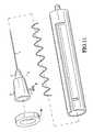 Atubular sheath43 is disposed around the adjustable-length tube40. Thetubular sheath43 has afirst end43awhich is rigidly connected with the first end of the adjustable-length tube and asecond end43bhaving anopening44 which is sufficiently large to allow the end of thehypodermic needle38 to pass therethrough. The outer surface ofmember51 is rigidly secured to end43aofsheath43. When the apparatus is not in use, the opening at each end of the tubular sheath may be covered by a cap (not shown in the drawings). The caps may screw onto the sheath, or snap onto the sheath.