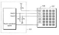 Referring to FIGS. 1 to3, acentral processing unit101 generally controls each component block in an inkjet printer. Central processing unit (CPU)101 determines the cartridge type by using a dimple-part contact signal detected from a dimple part of acartridge102 andCPU101 performs control corresponding to the determined cartridge type. At the same time,CPU101 controls an operation state of a nozzle of a printer head mounted incartridge102 depending on document data to be printed.