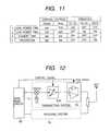 Next, an explanation will be given of a method of controlling operation of the high frequency power amplifier module with reference to FIG.11. First, at high output time, the operational mode switching terminal Vmode is applied with voltage at a low level (low level) and the operational bias control terminal Vreg is applied with desired voltage constituting a high level (high level). By the control, the amplifying transistors Q1 and Q2 on the high output side are brought into an operational state and the amplifying transistors Q3 and Q4 on the low output side are brought into a nonoperational state and the diode switching circuit SW10 is brought into an OFF state. Thereby, the amplifying circuit on the high output side is operated.