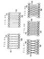 As a manner of disposing the pile130 (pile structure), it can be classified by a state being seen from the side face of thepiles130 connecting between thefront layer110 and theback layer120, more concretely, for instance, it can be classified into the following types shown in FIGS. 8A to8E. FIG.8A and FIG. 8B show a straight type in which thepiles130 are disposed to connect between respective fibers composing thefront layer110 and respective opposing fibers composing theback layer120, in which FIG. 8A shows a straight type knitted in the shape of the letter “8”, while FIG. 8B shows simply knitted straight. FIG. 8C to FIG. 8E show cross types in which thepiles130 are knitted between respective adjacent threads for thefront layer110 and respective adjacent threads for theback layer120 in such a manner that thepiles130 cross each other at the halfway. Among them, FIG. 8C shows a type in which thepiles130 cross in the shape of the letter “8”, FIG. 8D shows another cross type in which thepiles130 are knitted in a simple cross, and FIG. 8E shows still another cross type in which thepiles130 are crossed each other bringing two pieces together (double cross).