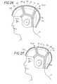FIG. 27 is a perspective view of helmet including an impregnated textile material, positioned on a wearer.