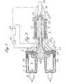 FIG. 7 shows a flapper nozzle coupling that can be placed between the working end of the actuator and the shaft end, instead of the rotational coupling shown in FIG.1. Theactuator25 includes two sets offlapper nozzles53 and54 directed in opposite directions, and aflapper piece55 extends from an end of thegenerator shaft20 so that the air flows issuing from the two sets offlapper nozzles53 and54 may be impinged upon theflapper piece55 in either axial direction. The air flows can be obtained by drawing a part of the compressed air from the outlet end of the compressor section. Anaccumulator57 may be provided in association with the actuator to accumulate the compressed air during the operation of the engine, and supply the compressed air when the engine is not in operation. To this end, aswitch valve56 may be used in addition to a shut offvalve58.