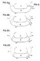 FIGS. 19A-D illustrate, in frontal plane cross sections, the naturally contoured sides design extended to the other natural contours underneath the load-bearing foot, such as the main longitudinal arch, the metatarsal (or forefoot) arch, and the ridge between the heads of the metatarsals (forefoot) and the heads of the distal phalanges (toes). As shown, the shoe sole thickness remains constant as the contour of the shoe sole follows that of the sides and bottom of the load-bearing foot. FIG. 19E shows a sagittal plane cross section of the shoe sole conforming to the contour of the bottom of the load-bearing foot, with thickness varying according to theheel lift38. FIG. 19F shows a horizontal plane top view of the left foot that shows theareas85 of the shoe sole that corresponds to the flattened portions of the foot sole that are in contact with the ground when loadbearing.Contour lines86 and87 show approximately the relative height of the shoe sole contours above the flattened load-bearing areas85 but within roughly theperipheral extent36 of the load-bearing portion of sole28bshown in FIG. 4. A horizontal plane bottom view (not shown) of FIG. 19F would be the exact reciprocal or converse of FIG. 19F (i.e., peaks and valleys contours would be exactly reversed).