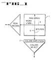 All modern DRAM, SRAM and ROM designs have internal architectures with row (word) and column (bit) lines to efficiently tile a 2-D area. Referring to FIG. 1, one bit of data is stored at the intersection of eachword line5 andbit line6. When a particular word line is enabled, all of the corresponding data bits are transferred onto the bit lines. This data, about 4000 bits at a time in a 4 Mbit DRAM, is then loaded intocolumn sense amplifiers3 and held for use by the I/O circuits.