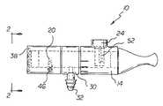 Amouthpiece56 is next provided. The mouthpiece is fabricated of rigid material. The mouthpiece has an outward portion and an inward portion. The outward portion is in a round cylindricaltubular configuration58 with a first inner diameter and a first outer diameter and is sized to be coupled with the inner portion of the main body. The inner portion of the mouthpiece is in a generallyarcuate configuration60 to conform to a user's grip within the user's mouth.