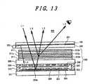 Further, this liquid crystal panel is not provided with a first phase difference plate, which is used in the liquid crystal panel described with reference to FIG. 13, and, instead, is provided with a thirdphase difference plate312efor improving the visual angle characteristics. This thirdphase difference plate312eis also called a visual angle enlargement film, and it improves the angle dependency of the display characteristics of the liquid crystal panel by making use of the birefringence characteristics.