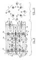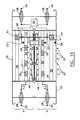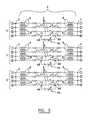 Now referring more specifically to FIGS. 9 and 10, one can see that the electromechanical switching device has fourelectromechanical switches5. FIG. 10 shows a partial and schematic cross-sectional view of the electromechanical switching device in which one can see the arrangement of the conductingrods22 with respect to therails36. Anelectric insulator38 is provided for insulating the switching rods from each other.