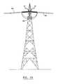FIG. 17 is a front view of a pylon supporting an electric power line on which modules according to the present invention are mounted.