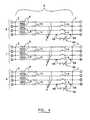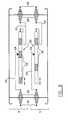 Now referring to FIG. 2, one can see two adjacent line segments each provided with pairs ofswitches6. For a given segment length, the pairs ofswitches6 must be able to switch a given voltage value. The more the segment is long, the more the voltage that the pairs ofswitches6 must switch and that the spacers and the yoke plates of the line segment must support, is high. For example, in FIG. 1, let us suppose that the pairs ofswitches6 can switch 10,000 volts, this determines a maximum segment length value. If one wants to double the length of the segment while using pairs of switches adapted for a voltage of 10,000 volts, one can use the configuration shown in FIG.2.