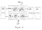 FIG. 3 illustrates a flow diagram of the down300 and up link302 paths.
