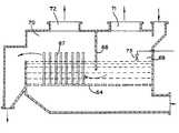 As is illustrated byarrows66, the polymer is typically directed aroundbaffle plates67 to minimize short circuitry and backflow of solids and maximize opportunity for uniform exposure of all of the polymer granules to the cooling gas. In addition, anunderflow weir68 as described in the aforementioned U.S. Pat. No. 5,516,880 is provided for dividing the cooler housing intoseparate chambers69 and70.
