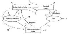 In morecomplex authentication responses13, also other information in addition to the call is required from the user. The most typical example of such other information is a PIN code. In such a case, theauthentication device4 first accepts the call and then registers the PIN code entered by theuser1. A PIN can be a fixed PIN given to the user or a one-time PIN generated by theauthentication device4 or the secured system for this particular authentication attempt and given to theuser1 in thechallenge12. A PIN may also be a one-time PIN from a predetermined sequence, in which case no PIN code is presented to theuser1 over thechannel5 either. The PIN sequence is known both to theuser1 and theauthentication device4.