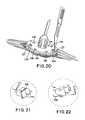 FIGS. 21 and 22 are enlarged views of a portion of FIG. 19 illustrating cutting a suture holding the annuloplasty band to the band-retaining plate;