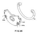 Yet another method for mounting theannuloplasty band40 to the band-retainingplate304 is shown in FIGS. 26-28. Asuture308asecures one end of theannuloplasty band40 to the band-retainingplate304 by looping around the annuloplasty band. Thesuture308amay loop around theannuloplasty band40 without penetrating theannuloplasty band40. Asuture308bsecures the opposite end of theannuloplasty band40 to the band-retainingplate304 in a like manner. Thesuture308amay be secured at afirst end309aand a second end310ato the band-retainingplate304. Thesuture308aproceeds from thefirst end309athrough the band-retainingplate304 to a cut point formed byfingers314, through the band-retainingplate304 and around theannuloplasty band40. One ormore fingers320 can be used to secure the central portion of the annuloplasty band to the band-retainingplate304. As shown in FIG. 28, aftersutures308aand308bhave been cut, theannuloplasty band40 is readily removed by allowing the sutures308a-bto pull away from theannuloplasty band40 but the sutures308a-bremain attached to the band-retainingplate304.