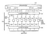 FIG. 1 shows a prior art example of a feed network including a single-beam phase-steeredcircular array antenna110 with aButler matrix120 mode-generator.Power divider150 performs an amplitude weighting of the modes that will be generated byButler matrix120. The power does not necessarily have to be divided equally overinput ports125 ofButler matrix120. Powerdivider input port155 represents a beam port. After passing through fixedphase shifters140 andvariable phase shifters130, the output ofpower divider150, input viainput port155, will be distributed overinput ports125, after which the signal will be combined byButler matrix120 to get the excitation of eachelement column112. An N×N Butler matrix120 feeding acircular array110 will produce N sets of uniform amplitude excitations ofoutput ports115, each excitation having a progressive phase shift, the size of which depends on thefeed port125 ofButler matrix120. ForButler matrix120 with phase shifts from thefirst element column112 to the (non-existent) (N+1)thelement column112 being integer multiples of 360°, the N excitations (and corresponding radiation patterns) can be considered to be modes, since they are orthogonal under a summation (or integration) around the array. Thus, eachinput port125 generates a single mode.