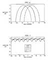 As known in the art, feeding only one ofinput ports125 ofButler matrix120 can produce an element excitation (“mode” excitation) with uniform amplitude and linear phase around the circumference ofarray110. FIG. 5 illustrates resulting radiation patterns for modes 0 (shown beginning at approximately 0 dB), (+)1 dashed pattern), and (+)2 (shown beginning at approximately−5 dB) from feeding only one ofinput ports125 ofButler matrix120 per mode. FIG. 6 illustrates resulting radiation patterns for modes 0 (shown beginning at approximately 0 dB), (+)3 (dashed pattern), and (+)4 (pattern with greatest amplitude variation) from feeding only one ofinput ports125 ofButler matrix120.