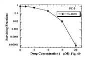 FIG. 3 is a graph depicting the in vitro effect of increasing concentrations of BE-4444 (◯), SL-11121 (), SL-11122 (□), SL-11123 (▪), SL-11126 (Δ), SL-11127 (▴), SL-11128 (⋄), SL-11129 (♦), SL-11130 (∇), and SL-11133 (▾) on the survival of cultured human prostate cancer cells DUPRO.