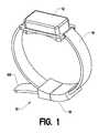 Other anti-tampering provisions are possible. Referring now to FIG. 4,lockable cover38 can be made of a conductive material such as aluminum. An electrical temperature sensor can then be placed on its internal surface and electrically connected tocontroller44. The temperature sensor would sense the normal human body temperature present when the device is present on the wearer's wrist. If the wearer removes the device, the sensor would detect the dropping temperature of lockable cover38 (so long as the ambient temperature is below human body temperature).Controller44 can then transmit a warning signal.