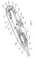 Actuator nut35 further has ratchetteeth40 formed on both sides of its outer circumference adjacent tocircumferential groove36. Actuator nut ratchetteeth40 are releasably engaged, on one side ofcircumferential groove36 by the engagement of aratchet pawl45 oncarriage assembly member33, and on the other side of the nut by corresponding ratchet hooks41 within the face of lumen end ofactuator tube39. The actuator nut ratchetteeth40 on both sides ofcircumferential groove36 are arranged in same direction, such that whenratchet pawl45 is engaged with one row ofteeth40,actuator nut35 cannot rotate in a clockwise direction viewed from the lumen end of the carriage assembly.
