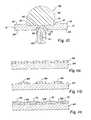 FIGS. 1a-11cillustrate one form of the electroform process to create an electroform tuba product used as thesubstrate10,13 in the present invention. FIG. 11ashows aflat metal mandrel64 coated with a layer ofphotoresist66. The photoresist layer is typically between from about 0.5 microns to about 5 microns thick. The photoresist layer is patterned with standard photolithography processes which are common in the semiconductor industry. After patterning and further processing,patterns68 are left on the surface as shown in FIG. 11b.Mandrel64 is used as one of the electrodes in a plating process. A suitable metal, preferably nickel, is plated ontomandrel64 and extends over thephotoresist patterns68 as shown in FIG. 11c.Electroform plate70 is peeled off the mandrel andphotoresist layer66 is then chemically removed. Although electroform products are described for use assubstrates10 and13, other substrate manufacturing methods such as chemical etching or stamping could also be employed.