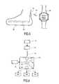 FIG. 5 is an illustration of a shoe incorporating the sensor and a wrist worn device for receiving and processing signals received from the sensor and presenting information to a user;