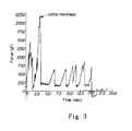 FIG.3. FIG. 3 illustrates a typical graph obtained with the Texture Analyzer for Initial Hardness (IH) of a finished snack chip, showing force (gf) vs. time (sec), to determine initial hardness as described in the Analytical Methods section herein.