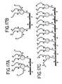 FIGS.17A-E: Schematic diagrams illustrating nanoparticle-oligonucleotide conjugates and systems for detecting nucleic acid using nanoparticles having oligonucleotides attached thereto. The circles represent the nanoparticles, the straight lines represent oligonucleotide chains (bases not shown), two closely-spaced parallel lines represent duplex segments, and the small letters indicate specific nucleotide sequences (a is complementary to a′, b is complementary to b′, etc.).