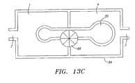 FIG. 11 is a fluid exchange device with two chambers, such that both an irrigation and aspiration chamber are arranged to operate in concert, with one filling and one expelling fluid in each direction and having separate input and output pathways for connecting to the reservoir and lumen elements.