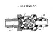In FIG. 1 is shown a cross-sectional view of a traditional check valve. Referring to FIG. 1, theinternal spring100 exerts a restoring force against the flow through theinlet110 so that theinlet110 is closed.