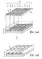 FIGS. 5band5cillustrate two other options for the preparation of microcups by imagewise exposure. The features in these two figures are essentially the same as shown in FIG. 5aand the corresponding parts are also numbered the same. In FIG. 5b, the conductor film (52) used is opaque and pre-patterned. In this case, it may be advantageous to imagewise expose the radiation sensitive material through the conductor pattern which serves as the photomask. The microcups (56) can then be formed by removing the unexposed areas after UV radiation. In FIG. 5c, the conductor film (52) is also opaque and line-patterned. The radiation curable material is exposed from the bottom through the conductor line pattern (52) which serves as the first photomask. A second exposure is performed from the other side through the second photomask (50) having a line pattern perpendicular to the conductor lines. The unexposed area is then removed by a solvent or developer to reveal the microcups (56).