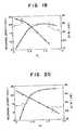 FIG. 18 is a diagram showing the measurement result of characteristics and showing the relation between a write density and a read output in a conventional head and in a head of the present invention, respectively;