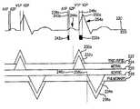 In the event an atrial or ventricular tachyarrhythmia is detected and an anti-tachyarrhythmia pacing regimen is desired, appropriate timing intervals for controlling generation of anti-tachyarrhythmia pacing therapies are loaded frommicroprocessor188 into the pacer timing andcontrol circuitry200, to control the operation of the escape interval counters therein and to define refractory periods during which detection of R-waves and P-waves is ineffective to restart the escape interval counters.