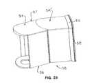 Eachupright side wall523,524 also has a further uprightedge wall part548 which is joined to and projects lengthwise from the other end of thecenter wall part543 so as to extend partially along the side peripheral edge of the endbase wall part531. The uprightedge wall parts548 define thereon outerconvex surfaces549 which have an arcuate configuration which in effect constitutes an axial extension of the outerarcuate edge wall532.