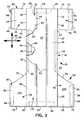 FIG. 3 illustrates a plan view similar toFIG. 2, but showing the surface of the article that faces the wearer when the article is worn, and with portions cut away to show the underlying features.