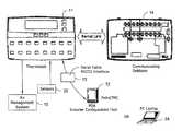 SUMMARYThe present invention minimizes the issues of complexities, user unfriendliness, and the amount of time and inconvenience involved in commissioning, testing and diagnosing a thermostat system. A personal digital assistant (PDA) may be used significantly easing such activities. PDA-based on line diagnostics may automatically discover the thermostat configuration, turn off normal controller delays, temporary override sensor inputs and set points, and verify proper output action including the monitoring the discharge air temperature for the resulting temperature behavior based on the equipment stages activated. Problems discovered are reported, automatically recorded and the original operating parameters can be restored. This means that less expertise may be required the technicians sent to install and trouble shoot thermostat installations.
