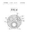 An irrigatedtip electrode48 is fixedly mounted on the distal end of thenon-conductive tubing40. Preferably thetip electrode48 has a diameter about the same as the outer diameter of the totubing40 and an exposed length, i.e., the length extending outside of the tubing, ranging from about 2 mm to about 10 mm. As illustrated inFIG. 5, thetip electrode48 is generally solid, having afluid passage50 and first and secondblind holes52 and54 that correspond in size and location to the threelumens46,42 and44, respectively, in thenon-conductive tubing40. In the embodiment shown, thefluid passage50 comprises alongitudinal branch56 and sixtransverse branches58 that extend transversely from near the distal end of the longitudinal branch to the outer surface of thetip electrode48. Itis understood that the configuration of thefluid passage50 may vary as desired. For example, thefluid passage50 may form a longitudinal hole that extends out the distal end of the tip219electrode48 without transverse branches, or thetip electrode48 may be porous enough to allow fluids to pass to the outer surface of the tip electrode, the interconnecting pores forming the fluid passage. Examples of suitable porous electrodes for use in the present invention are described in U.S. Patent Application entitled “Porous Irrigated Tip Electrode Catheter”, by inventors Michele Fung and Shawn Moaddeb, filed concurrently herewith, the disclosure of which is incorporated herein by reference.