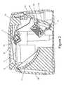 FIG. 2 is a cross-sectional view of the preferred embodiment depicted externally inFIG. 1, showing the internal workings of the imager. First, the internal workings of the embodiment are contained in ahousing36. A LED orother lamp16 provides a light source that emits light, preferably of a green wavelength. The light is directed through a two-stagespatial filter18 defines the angle of a cone of light emitted from the light source. (The spatial filter is so placed as to avoid direct light from theLED16 shining on the object to be imaged ataperture11.) The light is then directed onto aconcave mirror14 that is positioned to capture the full cone of light. From theconcave mirror14 the light is reflected through thefinger aperture plate12 to fully illuminate a fingertip placed over the opening orfinger aperture11 infinger aperture plate12 so as to intercept and reflect the cone of light from theconcave mirror14. (The user liftslid32 by pivoting onhinge34 to access thefinger aperture11.) Thefinger aperture plate12 is positioned to hold the finger at about a 45 degree angle that is close to Brewster's angle, causing the specular component of the light to be partially linearly polarized.