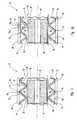 As discussed in conjunction withFIGS. 3 and 4 below, the end cap can be configured in a variety of ways to practice the teachings of this invention, including threaded caps that can be secured to an exterior or interior of thehousing12. Additionally, eachend cap20,22 may be secured to arespective end14,16 of thecorrugated metal housing12, or to arespective end26,28 of the covering24 positioned about thehousing12. In the embodiment illustrated inFIG. 1, thestop portion32 of eachend cap20,22 is snugly positioned within theopenings18 of eachend14,16 of thehousing12 with anouter end38 of eachend cap20,22 extending beyond respective ends14,16 of thehousing12. Theouter end38 of eachend cap20,22 is secured to the covering24 by a crimpedsleeve40. Thesleeve40 is preferably annular with afirst end42 fixed within aslot44 within eachend cap20,22. Asecond end46 of the sleeve is positioned about a portion of thecovering24. Thesecond end46 is crimped to force arespective end26,28 of the covering24 into anindentation48 within eachend cap20,22, thus securing the covering24 to the end caps20,22. Because thecorrugate housing12 elongates when internal pressure is applied, it does not need to be directly attached by other means. However, in one alternative embodiment, thecorrugate housing12 may be sealed to the end caps20,22 by an o-ring placed between thecorrugate housing12 and theinitiator52 or thefirst end cap20.