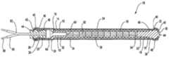 In this embodiment, astop232 is positioned within theopenings218 of eachend214,216 of thehousing212. Thestops232 each have a taperedexterior portion233 andexterior threads235 configured within anouter end238 of eachstop232. The first and second end caps220,222 each haveinterior threads237 configured to engage theexterior threads235 of thestops232. The end caps220,220 are positioned about respective ends226,228 of the covering224 which acts as an extension of thehousing212. With theexterior threads235 of thestop232 in mating engagement with theinterior threads237 of the end caps220,222, the ends226,228 of the covering224 are clamped between the end caps220,222 and thestops232 at the taperedexterior portion233 of eachstop232. With the end caps220,222 screwed to thestops232 about the covering224, the taperedexterior portion233 of eachstop232 prevents thestops232 from exiting thehousing212. In other embodiments, thestops232 may be secured within thehousing212 by bonding, welding, latching, or other known attaching methods. Thefirst end cap220 is configured withexternal threads239 for receiving a threadedinitiator assembly252.